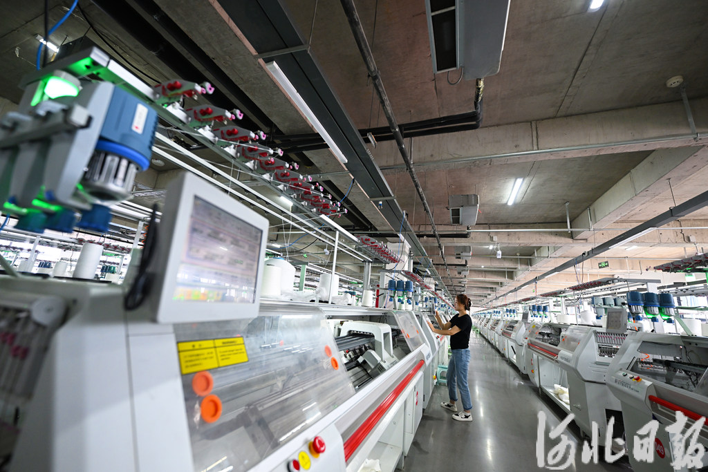4月26日,在清河縣新華·慈星羊絨針織數字化共享工廠,工人使用全自動電腦針織橫機生產羊絨服飾。河北日報記者趙永輝攝