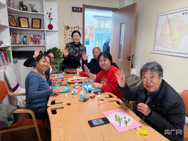 老人們?cè)谏鐓^(qū)食堂做手工(央廣網(wǎng)實(shí)習(xí)記者 張鏨節(jié) 攝)