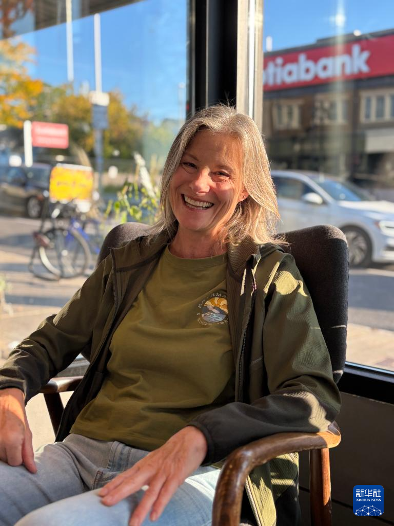 10月4日,佩姬·西利在加拿大渥太華一家咖啡館接受記者采訪。新華社發(陳敏攝)