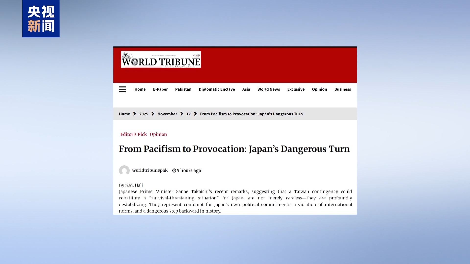 巴基斯坦國際問題專家蘇爾坦·哈利在《世界論壇報》刊文指出,日本首相高市早苗的言論不僅違反了日本的政治承諾,也是一種危險的挑釁,威脅地區(qū)和平。亞洲承受不起重蹈軍國主義覆轍的代價,日本必須牢記其承諾。