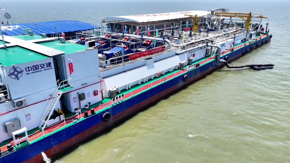 在幾十公里外的無錫宜興水域,一座名為“太湖之光”的水上“移動工廠”正24小時(shí)運(yùn)轉(zhuǎn)。它由多艘作業(yè)船串聯(lián)而成,管道縱橫、設(shè)備密布。