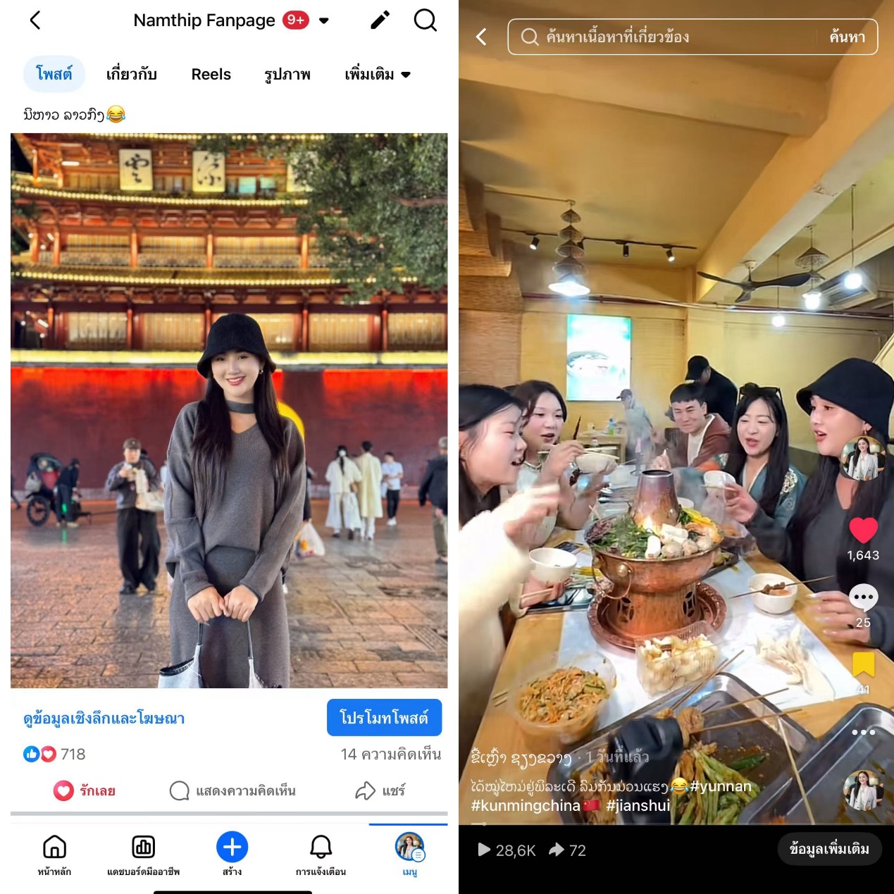 步入昆明老街,青石板路與飛檐翹角瞬間將時光拉回往昔。擁有120余萬粉絲的老撾博主Parn對著琳瑯滿目的明制漢服與戰國袍興奮不已,陷入了甜蜜的“選擇困難”:“每一套都太美了,我都想試!”而擁有60多萬粉絲的Thip,在完成精致妝造后,立刻化身“古裝偶像劇主角”,手機拍個不停,迫不及待地通過社交媒體展示華服魅力。