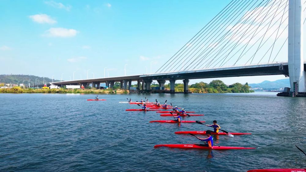 在賽艇的劃行中凝聚韶關的協作力量在風箏的翱翔中寄托陽江的飛揚理想在跳水的翻騰中展現湛江的矯健風采