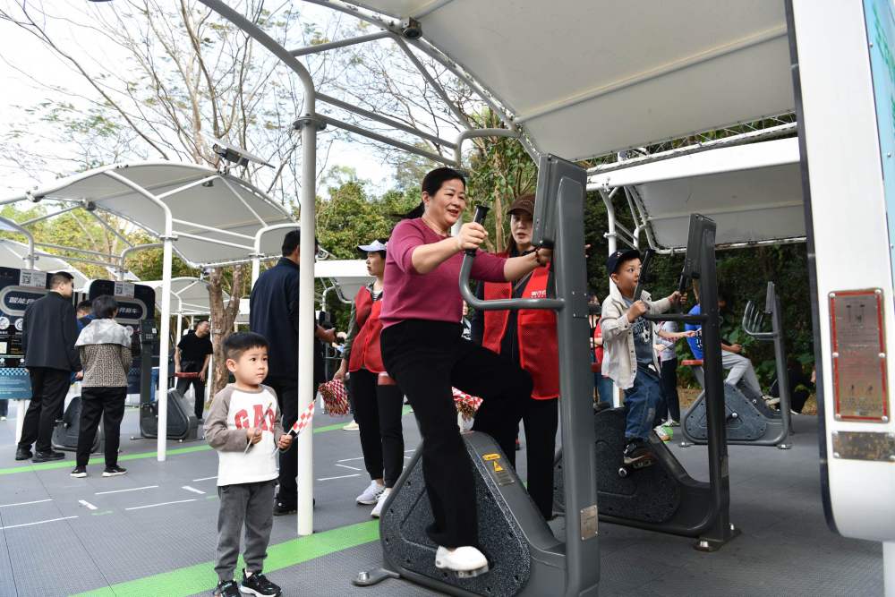 2024年1月20日,市民在深圳蓮花山公園西區室外智能健身房參加競賽活動。新華社記者 梁旭 攝