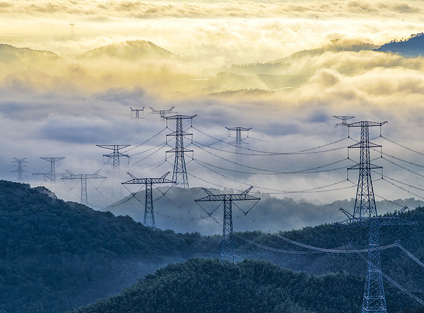 中國特高壓線路穿梭青山云海