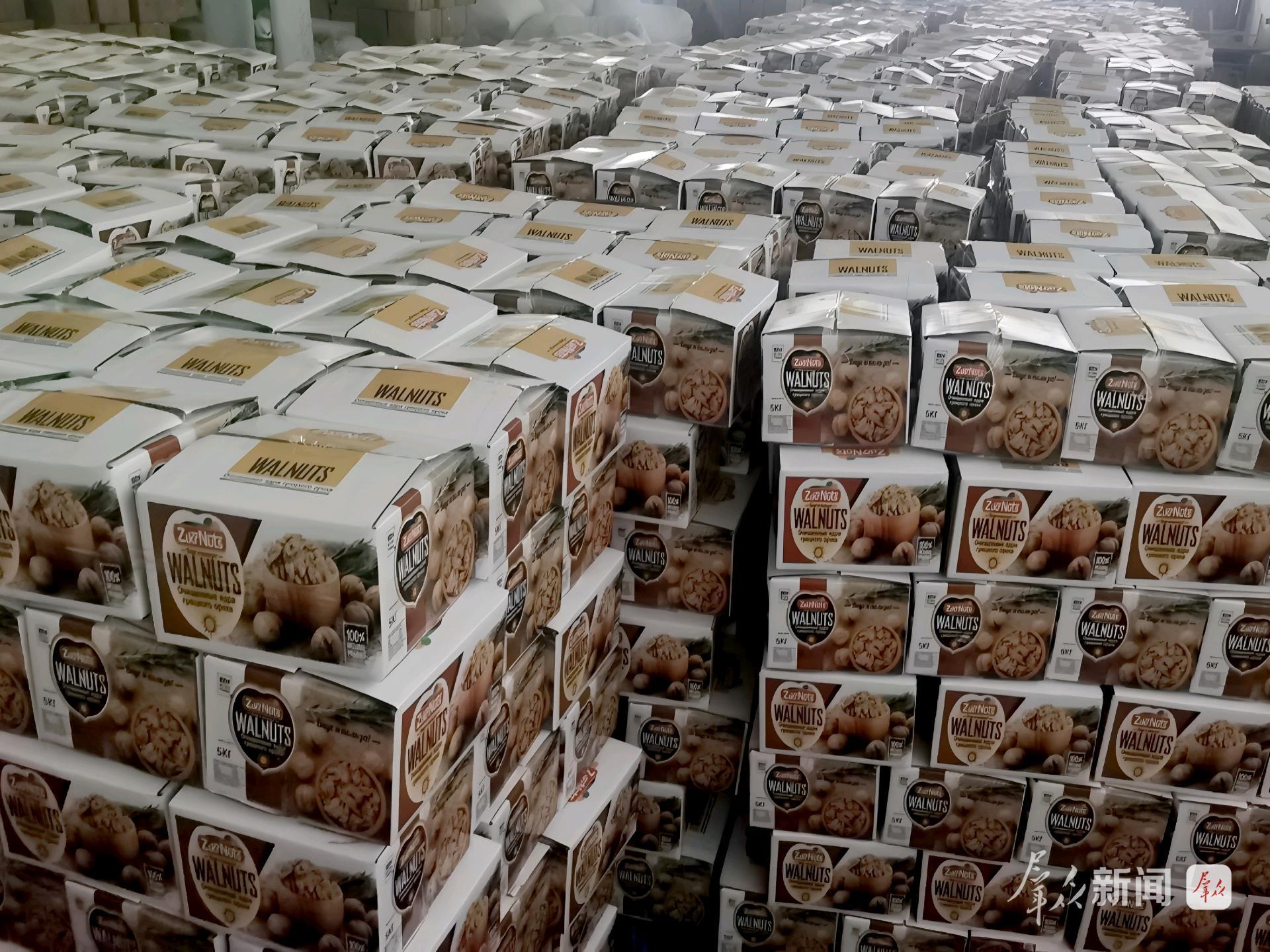 這座物流園于2022年11月建成,2023年7月運(yùn)營(yíng),已成為西北地區(qū)核桃產(chǎn)業(yè)現(xiàn)代化標(biāo)桿園區(qū)之一。核桃的交易、加工、倉(cāng)儲(chǔ)、銷(xiāo)售全部在這里完成。
