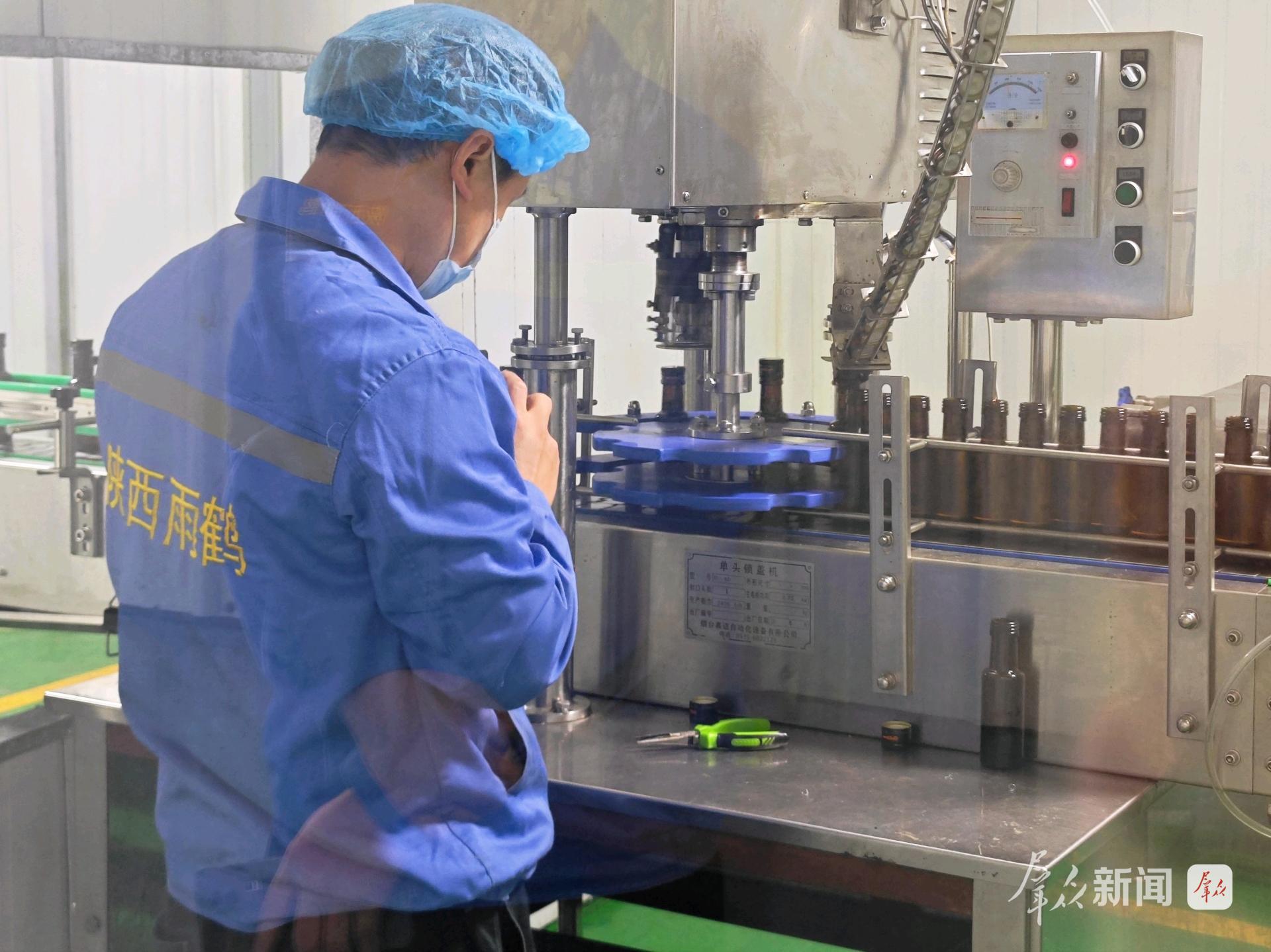 10月10日,在陜西雨鶴生物科技有限公司生產(chǎn)車(chē)間,工人全神貫注盯著灌裝生產(chǎn)線上的核桃油?!肮疽愿叨耸秤糜彤a(chǎn)業(yè)化經(jīng)營(yíng)為主,擁有壓榨、精煉、全自動(dòng)化灌裝生產(chǎn)線?!睏顒偲浇榻B,“用于生產(chǎn)核桃油的核桃主要是洛南本地的老樹(shù)核桃。洛南核桃經(jīng)常不夠用,我們還從新疆等地收購(gòu)?!?/p>